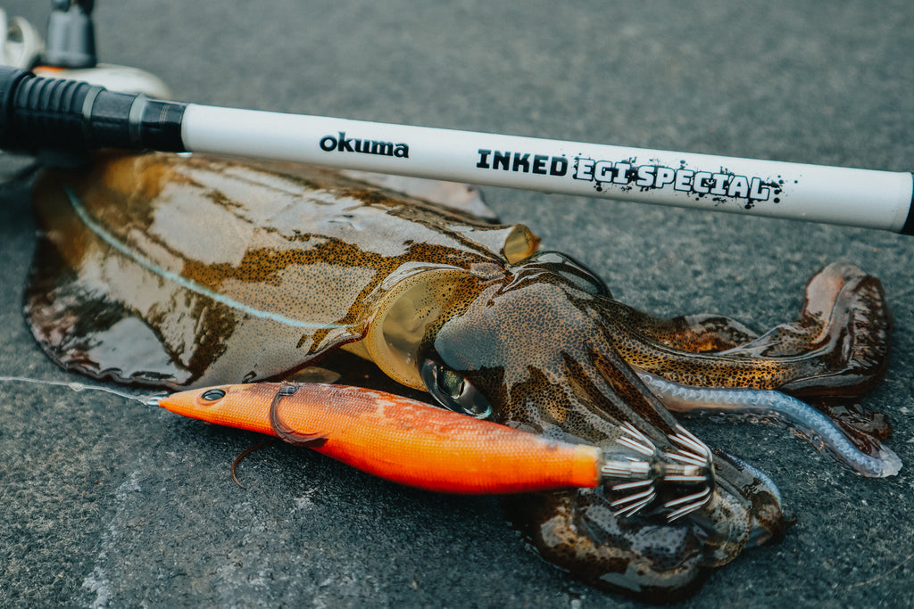 A classy squid rod, complete with inked motif, the Okuma Inked EGI Special is built on a balance between the softness in the tip required not to pull jigs and the power in the lower section to make long casts, work the jig and control the surges of the hooked squid.