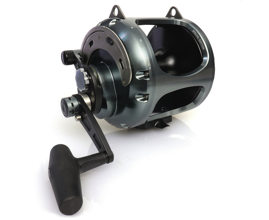 It's not just the special edition 10th Anniversary tri-blue anodising or yellowfin tuna etched into the side plate that sets this reel apart though. Open spool bearings with TSI-301 oil decreases free spool resistance by 2 times and when you switch to the lower speed on the 20, 30 and 50 you are geared lower than on the gold version, giving you additional grunt for hauling trophy fish from the depths. To back up this additional power the 20 and 30 size also come fitted with the MK-50 handle arm and knob. The Makaira SEa defines precision, performance and power. Game on!