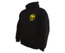 Features include long sleeves with cuffs, hood with cord for adjustment and front kangaroo pocket. Premium Gildan heavy blend, 50% cotton/50% polyester. Available in classic black and comes in sizes small - XXX large.