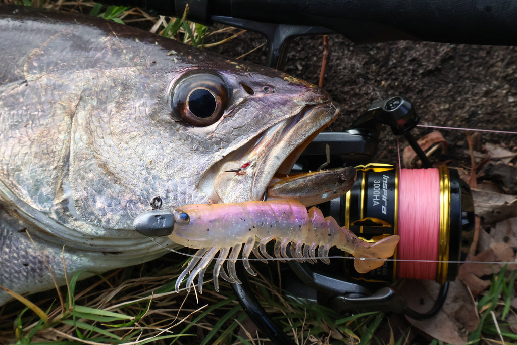In terms of rigging on a standard TT HeadlockZ HD jighead, the 3.5” model pairs perfectly with 3/0 or 4/0, and the 5” model with a 7/0 or 8/0. When weedless rigging on the range of TT ChinlockZ, ChinlockZ SWS and SnakelockZ jigheads, a 3/0 or 4/0 best suits the 3.5”, stepping to an 8/0 in the 5”. These rigging options allow anglers to fish from unweighted through to 3oz, making the ultimate prawn imitation even more versatile!